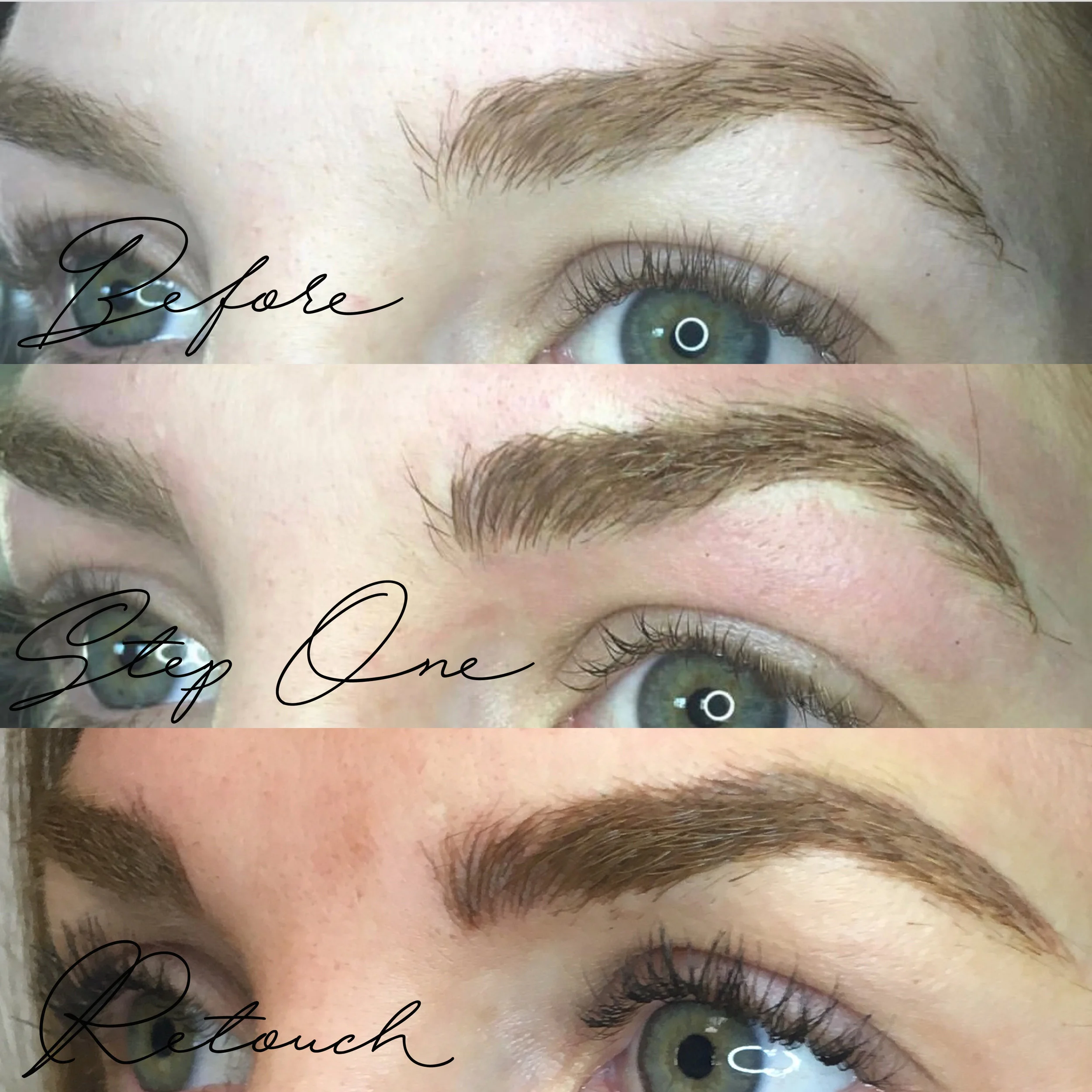 Microblading is tiny tattoo like strokes of pigment under the surface of your skin, to mimic hair strokes! (Way more natural looking than actual tattoo eyebrows- or as permanent) These lines help to create the perfect brows- fill in empty/sparse places, give you a nice arch and align otherwise uneven brows to match the shape of your face! This process can last up to three years depending on your skin type and how well you take care of them.